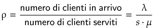 Indichiamo con λ il numero di clienti in arrivo alla cassa in un’ora, con μ il numero di clienti che la singola cassa può servire in un’ora e con s il numero di casse attive (sia automatiche che tradizionali). Allora, il fattore di utilizzo ρ è definito come il rapporto tra il numero di clienti in arrivo e il numero di clienti serviti: